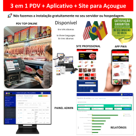 Açougue Casa de Carnes 3 em 1 - PDV + APP + Site -..